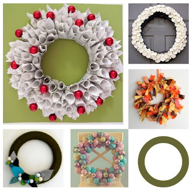 I had orginally planned to make 5 of my own wreath tutorials for you all (the kitchen table covered in wreath bits can atest to that), but I haven't been as crafty or as motivated as I planned. So instead here are my five favorite D.I.Y. wreaths and links to their tutorials -